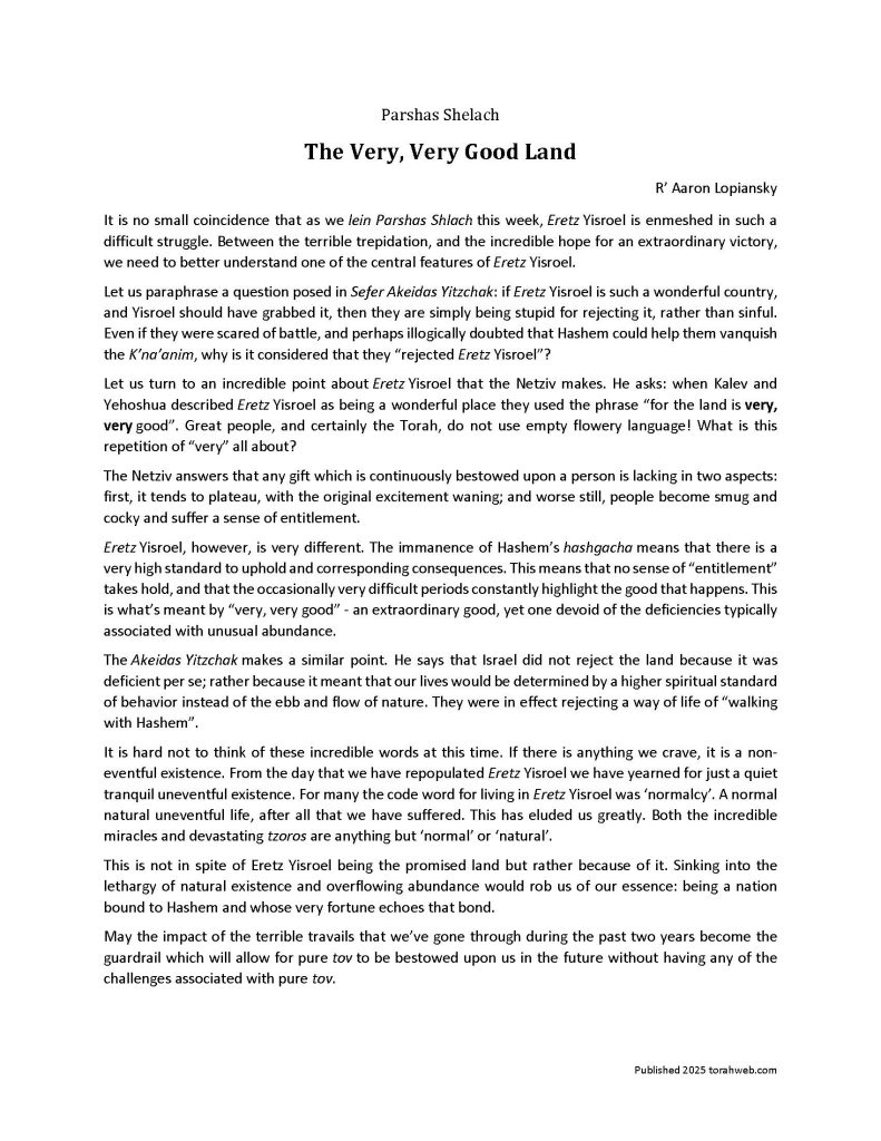 In this legendary weekly shiur, R’ Aaron Lopiansky, in his classic style, brings the depth of the weekly parsha to life. The shiur always begins with a series of questions on the parsha. Each week R’ Aaron will present an important new perspective and through this perspective will answer all the open questions. The ideas presented in the shiur will show you the parsha and our world in a wonderful new light, with layers and meaning that you never knew existed. This shiur is delivered live at Yeshiva Greater Washington and is open to the public. It is also streamed on Zoom.